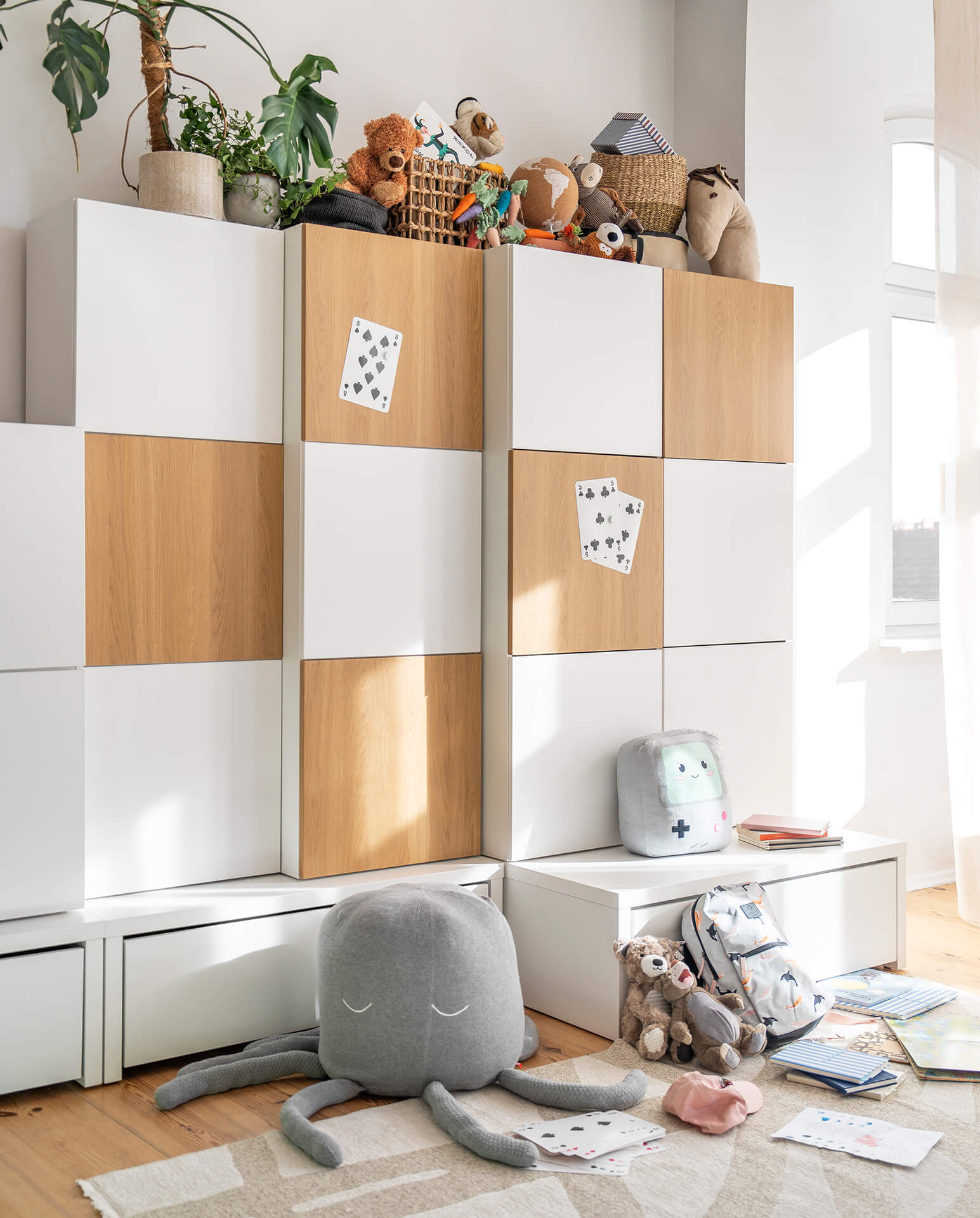 - Na podeście można ustawić zamknięty regał, szeroką komodę czy 2-drzwiową szafę z serii Young Users. Pamiętaj, by połączyć całość za pomocą dołączonych do zestawu okuć, a dodatkowo przytwierdzić zabudowę do ściany.