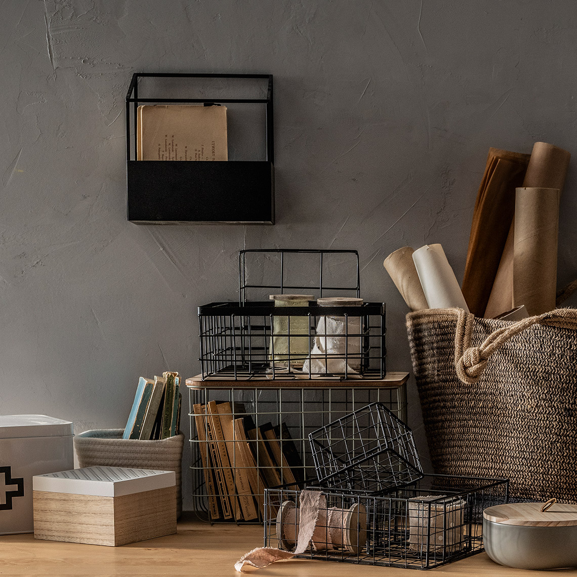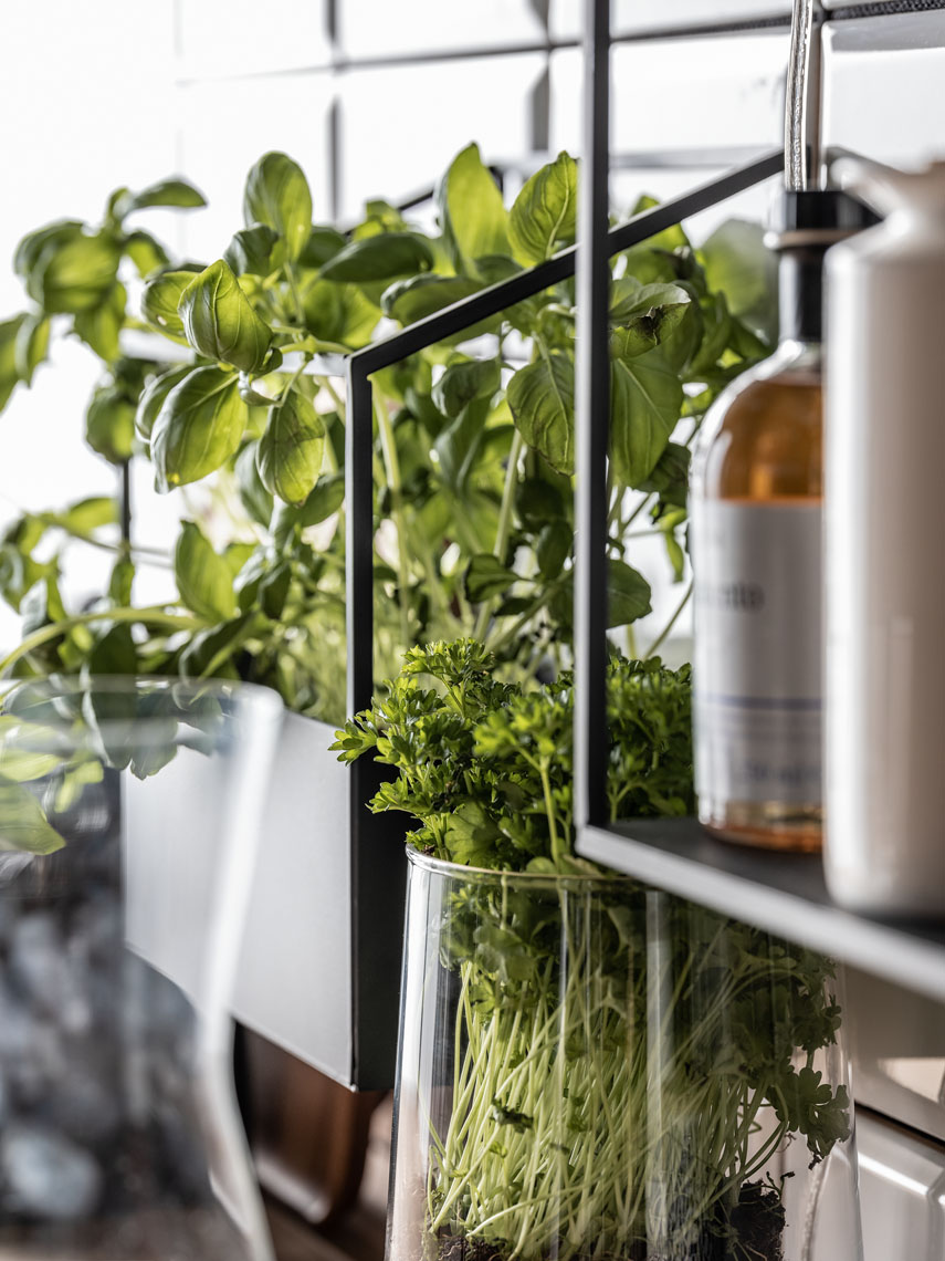 Półka Est może zostać zamontowana na ścianie lub stać na komodzie lub biurku.