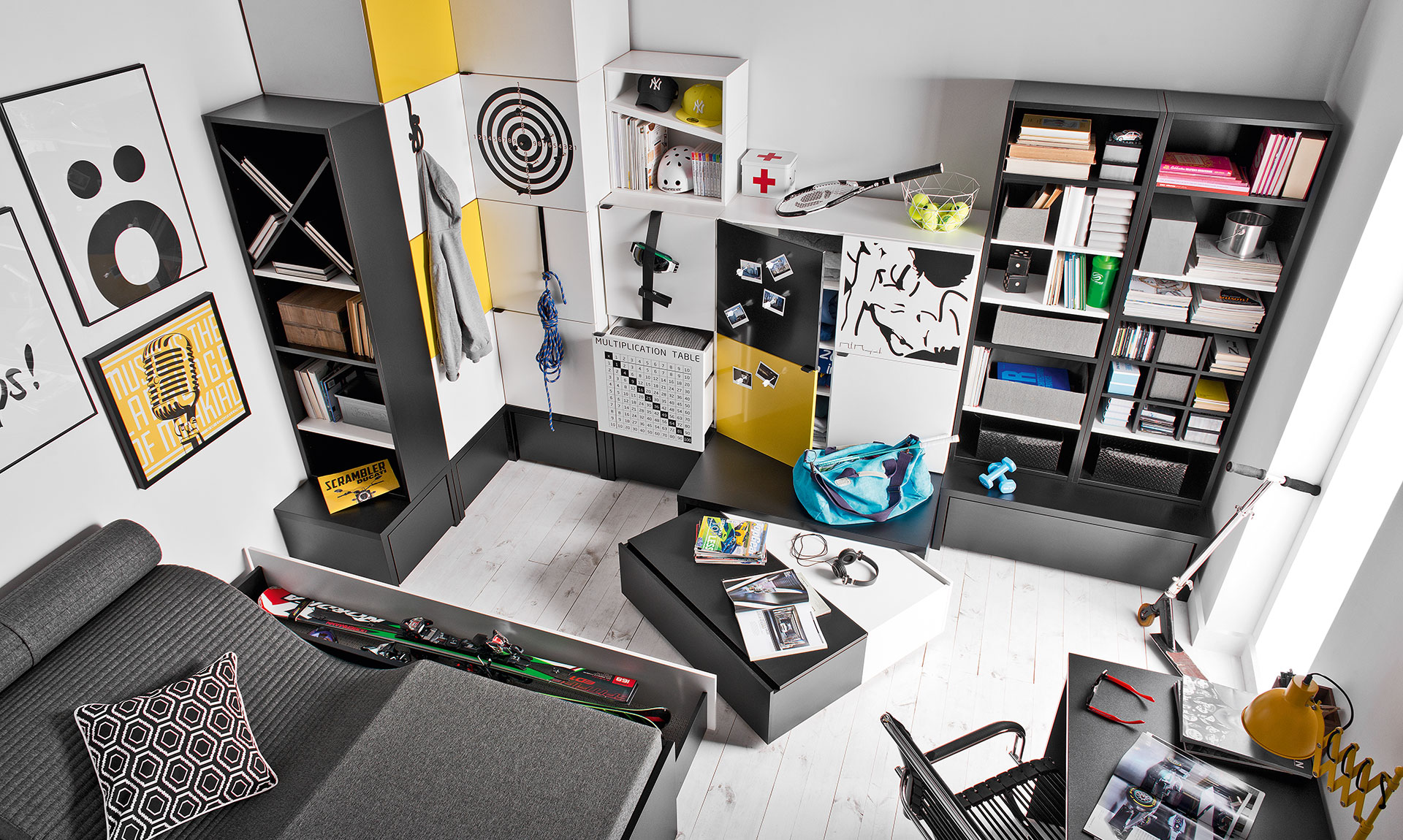 - Mebel stworzy funkcjonalną aranżację wraz z innymi półkami z kolekcji Young Users: półką L, półką kostką, pojedynczą półką oraz półką skośną czy prostą.