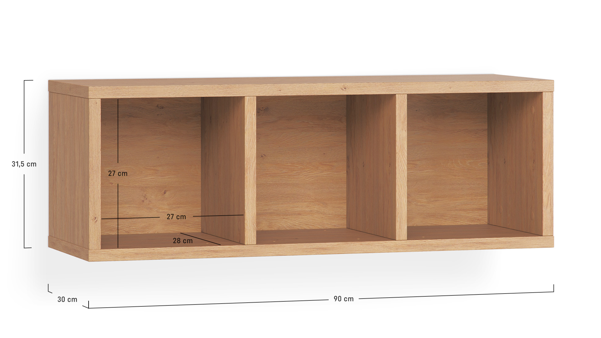 Półka dostępna jest w 4 kolorach: białym, szarym, czarnym oraz dębowym. Możesz ją zamontować na ścianie pojedynczo lub zmultiplikować w kilku kolorach tworząc tym samym ciekawą aranżację na ścianie. Półkę możesz powiesić zarówno w pozycji pionowej jak i poziomej. Przegrody pionowe wewnątrz półki posiadają możliwość regulacji wysokości dzięki czemu możesz zmienić ich położenie i dostosować do wielkości przedmiotów, które chcesz przechowywać w poszczególnych wnękach. Półka może także stać na ziemi i pełnić rolę małego stoliczka.