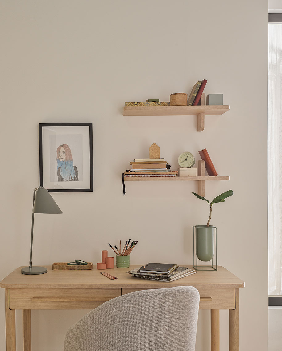 - Szerokość półki została dopasowana do wymiarów toaletki z tej samej kolekcji, co ułatwia stworzenie harmonijnej aranżacji.