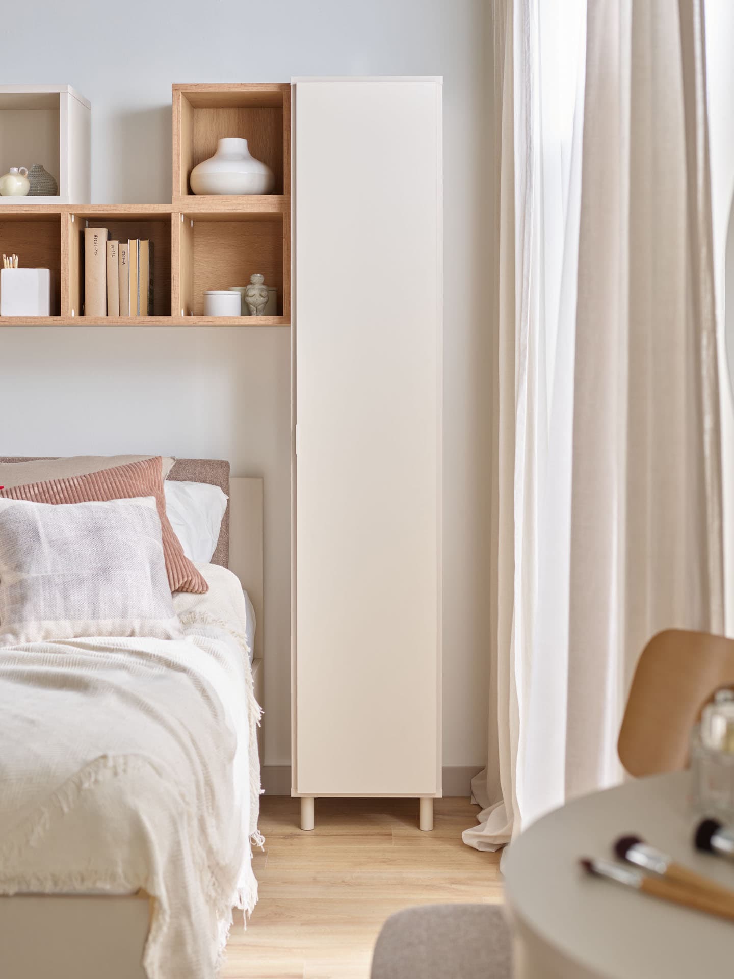 - Zamknięty regał Simple będzie dobrym rozwiązaniem jeśli potrzebujesz płytkiego, ale zamkniętego mebla do przechowywania. Wąski mebel zajmuje mało miejsca i jest całkiem pojemny. Pozwala na zachowanie, nie tylko wizualnego, porządku we wnętrzu. Drzwi z krawędziowym uchwytem zabezpieczą zawartość 4 regulowanych półek.