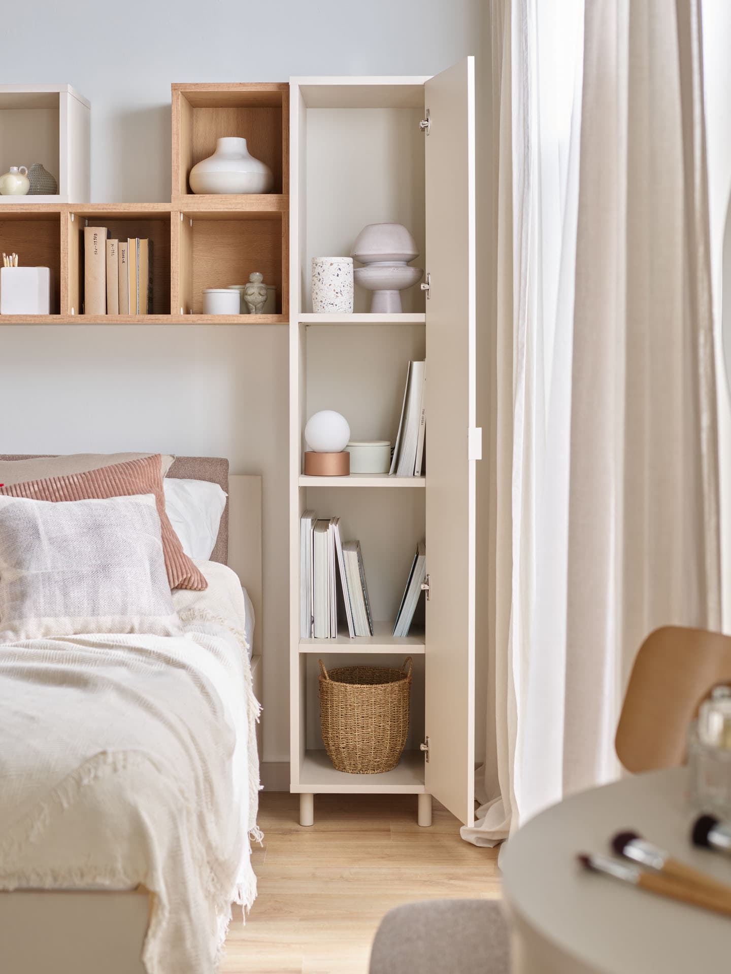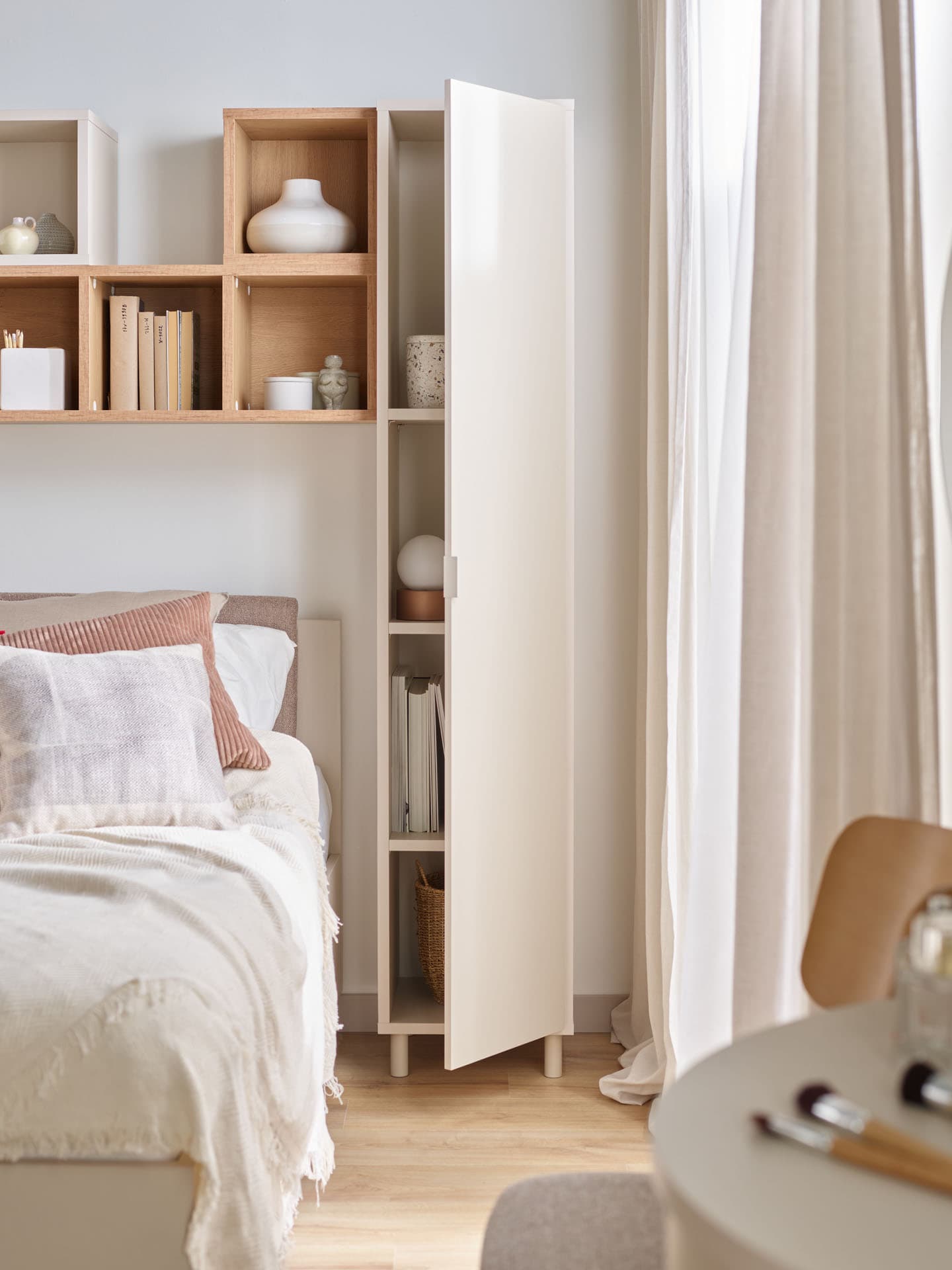 - W kolekcji Simple znajdziesz również inne regały o otwartej konstrukcji: wąski (1x5), podwójny (2x5), szeroki (4x5) oraz niski (3x4). Meble można swobodnie zestawiać tworząc spójną przestrzennie kompozycję.
