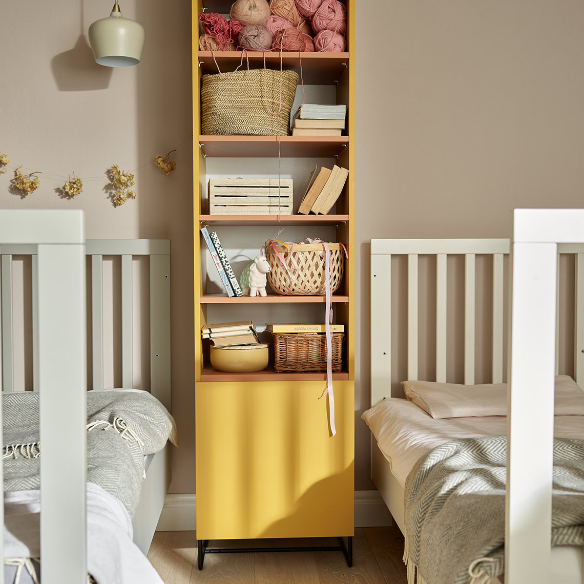 - Wygląd regału dodatkowo spersonalizujesz poprzez dobór jego kolorystyki. Dla każdego elementu możesz wybrać inny kolor z 11 dostępnych barw.