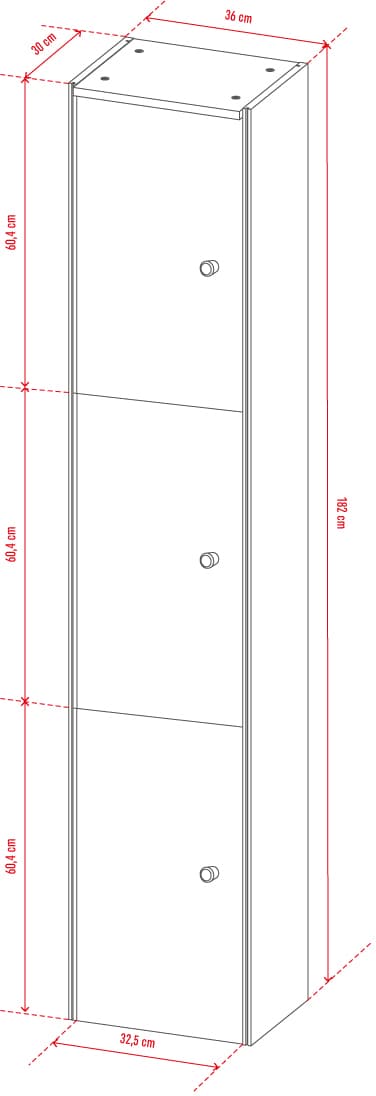 - Na wiszący słupek składają się trzy zamykane szafki. Drzwiczki każdej z nich otwierają się niezależnie, co pozwala sięgać po wybrane przedmioty bez odsłaniania zawartości całego mebla. Dzięki mechanizmowi cichego domyku, możesz zapomnieć o hałaśliwym trzaskaniu.