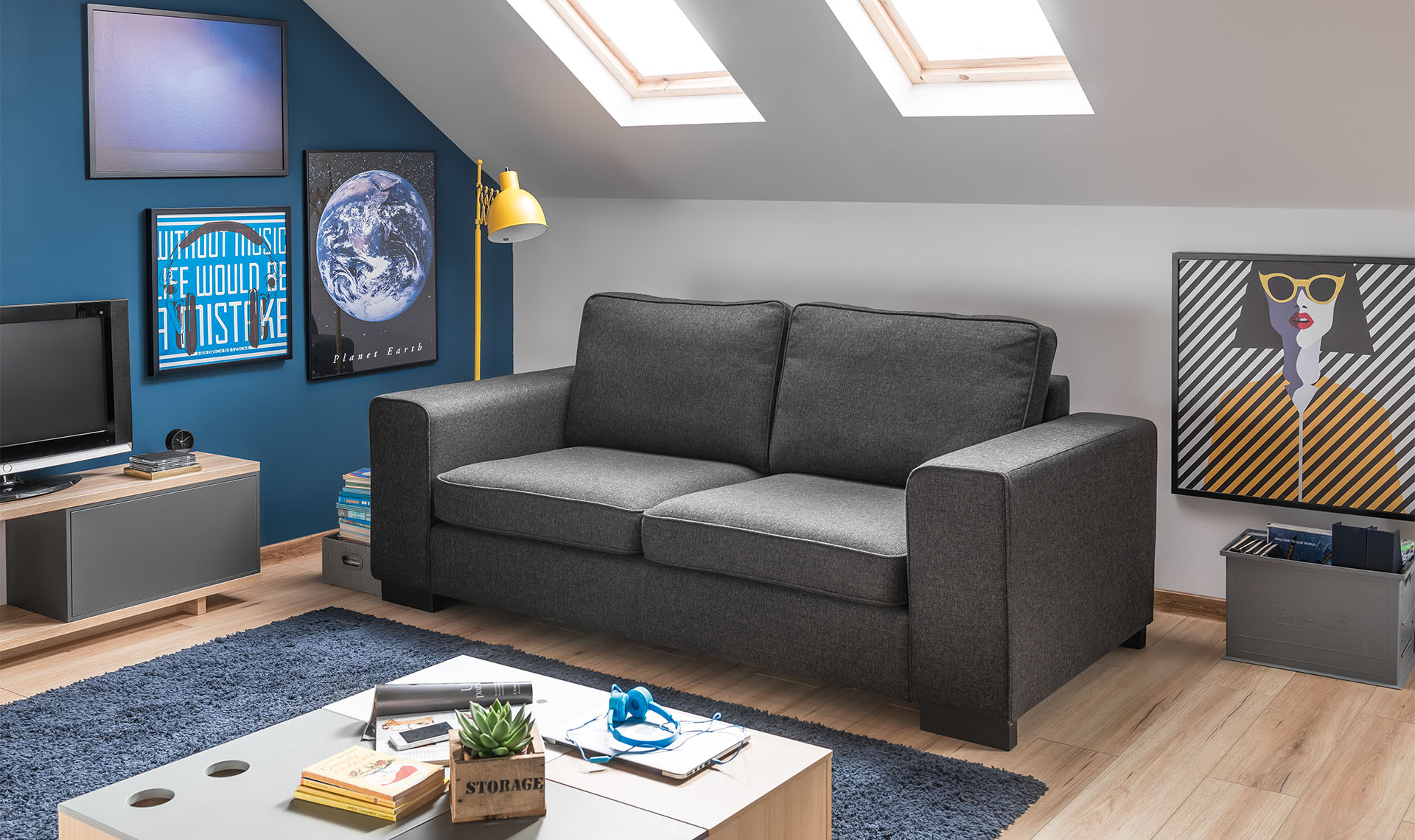 Kolekcja Noel to sposób na ciekawe wnętrze. Dzięki zróżnicowanym modelom mebli: od narożnika, aż po puf, W Twoim wnętrzu znajdzie się miejsce na wszystko, tylko nie na nudę. Klasyczne geometryczne kształty skrywają otulającą miękkość. Dzięki funkcji spania, sofa dwuosobowa może w ciągu dnia służyć do podejmowania gości, a w nocy stanowić dodatkowe miejsce do spania. Tzw. stelaż belgijski - zamontowany w sofie, zalecany jest do spania okazjonalnego. Powierzchnia spania wynosi 184x113cm. Dzięki jednolitej powierzchni materaca nie ma możliwości zapadnięcia się w szczelinę. W kolekcji Noel znajdują sofy 2; 2,5 oraz 3 osobowe, zarówno z funkcjami spania jak i bez. Z wszystkimi pozostałymi elementami kolekcji możesz zapoznać się w salonach stacjonarnych. Oferujemy szeroki wybór mebli gotowych oraz moduły, z których możesz skomponować mebel w odpowiednim dla Ciebie kształcie i rozmiarze. Wszystkie elementy kolekcji Noel dostępne są w różnych tkaninach i wersjach kolorystycznych. Pełen wzornik dostępnych materiałów oraz kolorów znajdziesz w każdym salonie VOX z ofertą meblową. Chcąc zapewnić najlepsze warunki wyboru wykończenia mebli, zapraszamy Cię do jednego z naszych salonów, gdzie można tkaninę dotknąć i obejrzeć w różnym świetle.