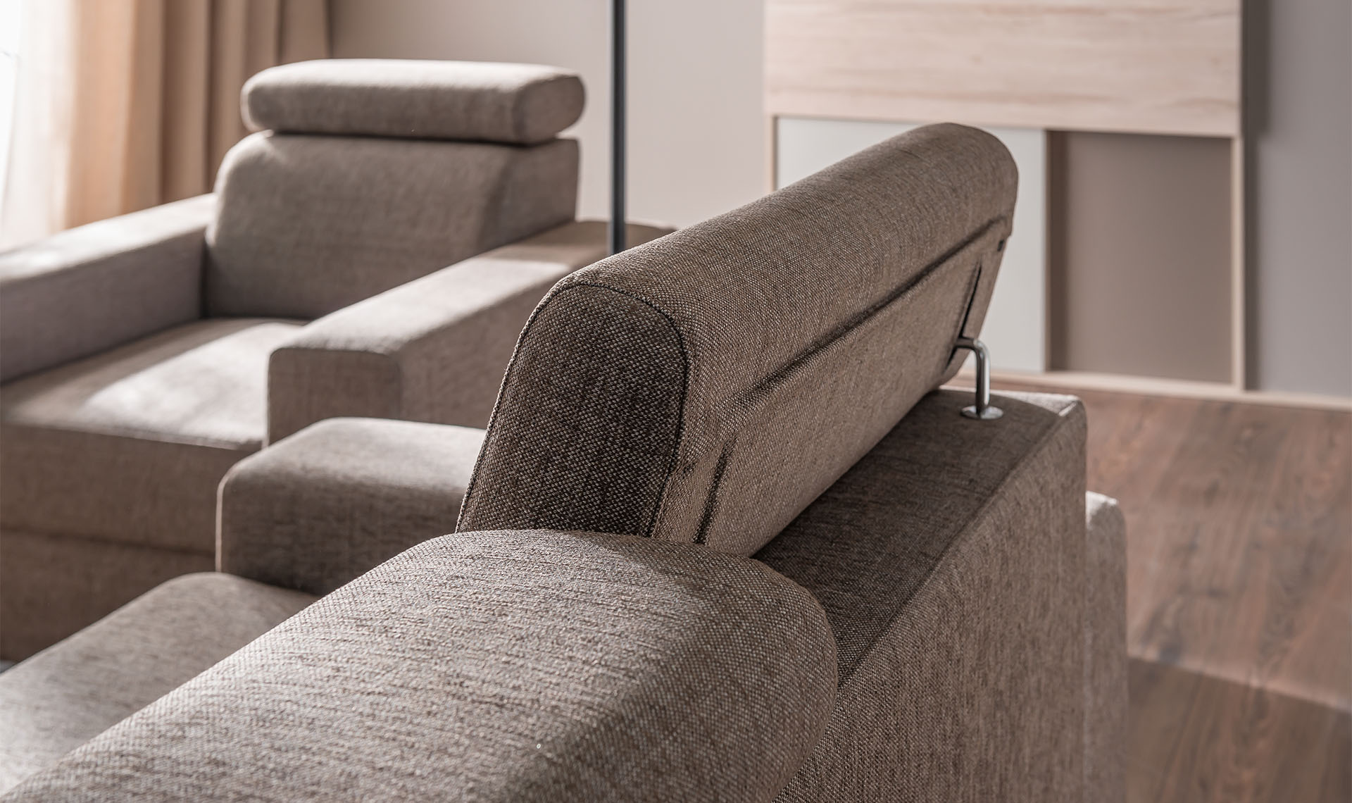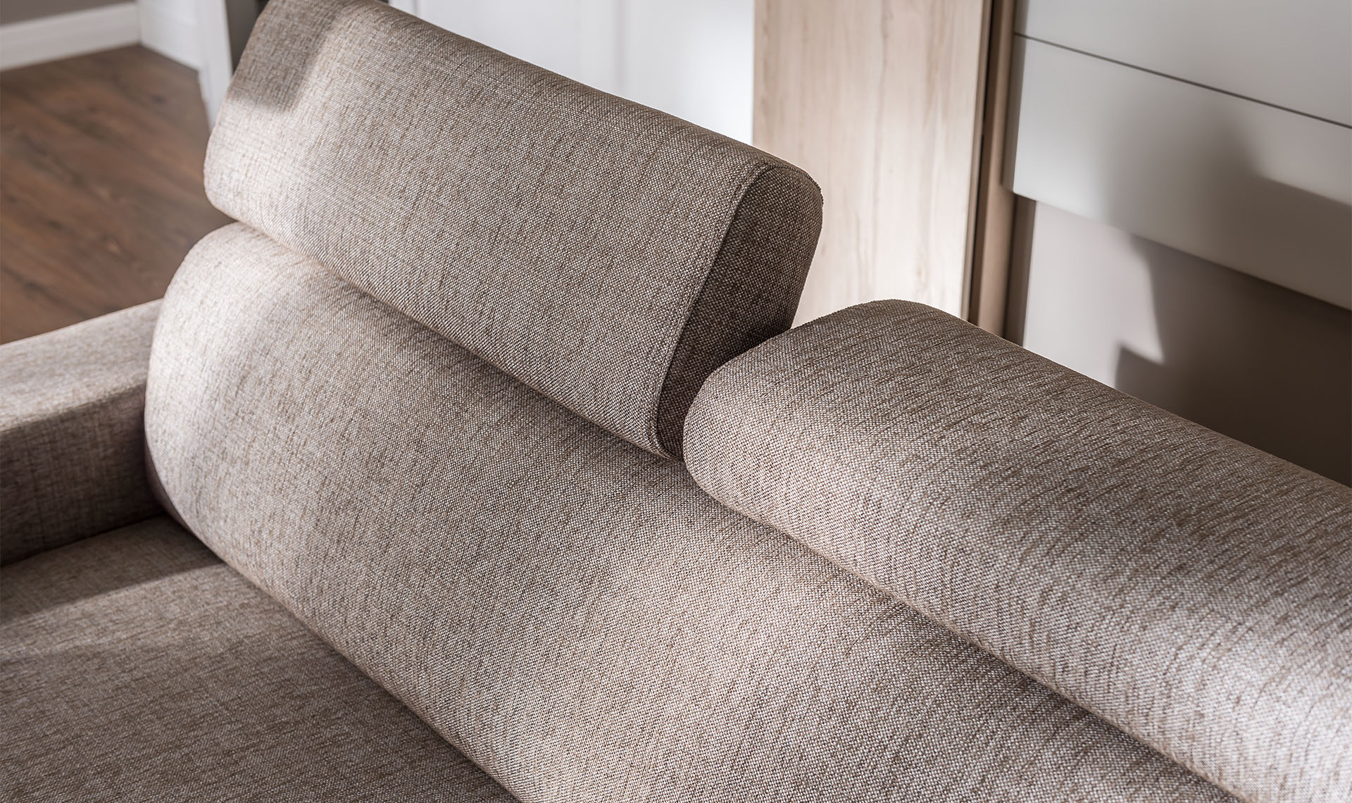 - Miękka sofa, bez funkcji spania i pojemnika na pościel, jest szczególnie wygodna. Komfort odpoczynku podnoszą 2 szerokie podłokietniki i 3 niezależnie regulowane zagłówki.