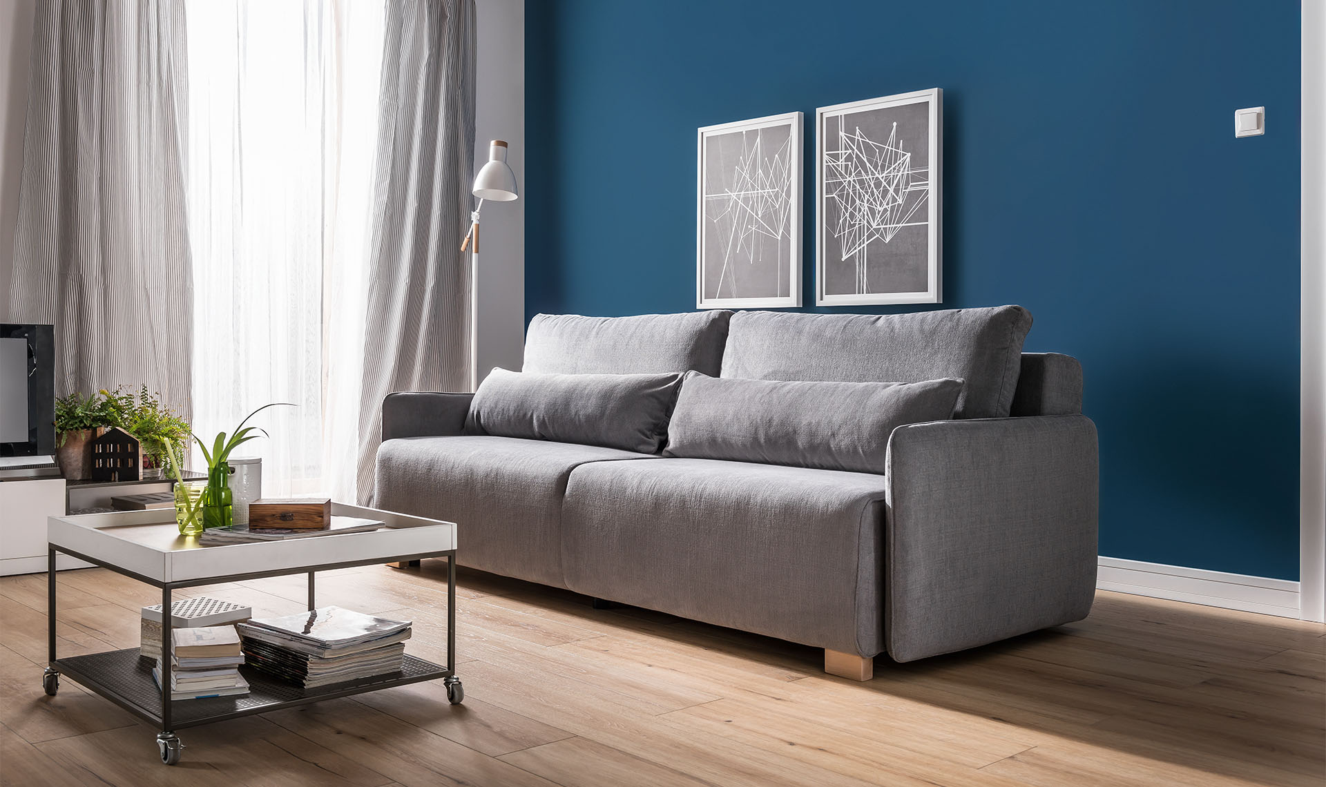 - Dzięki systemowi rozkładania typu DL ze wspomaganiem, mebel można szybko przygotować do snu. Uzyskana powierzchnia spania o wymiarach 147 x 203 cm jest odpowiednia dla 2 osób.