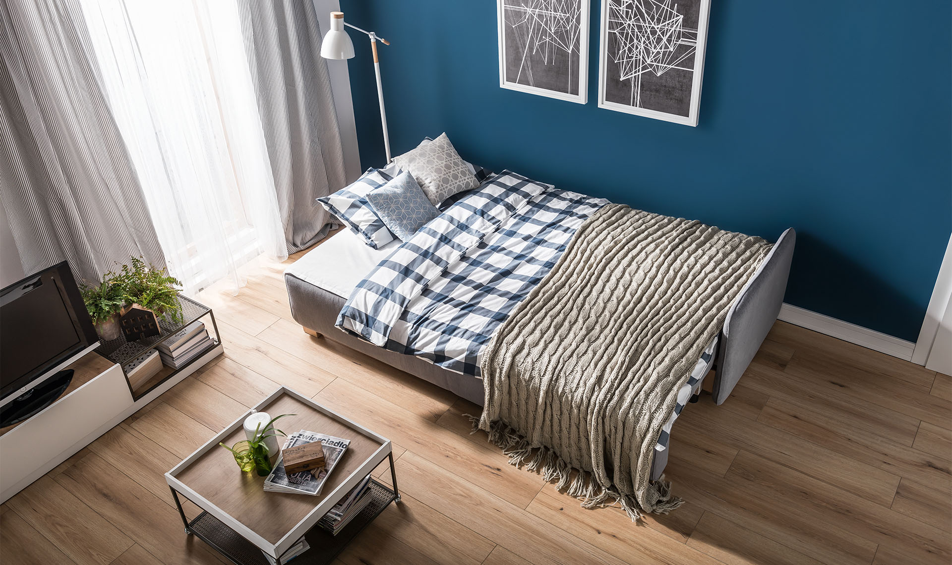 - Mebel zawiera pojemnik na pościel i szeroki tył, który może służyć jako poręczna półka.