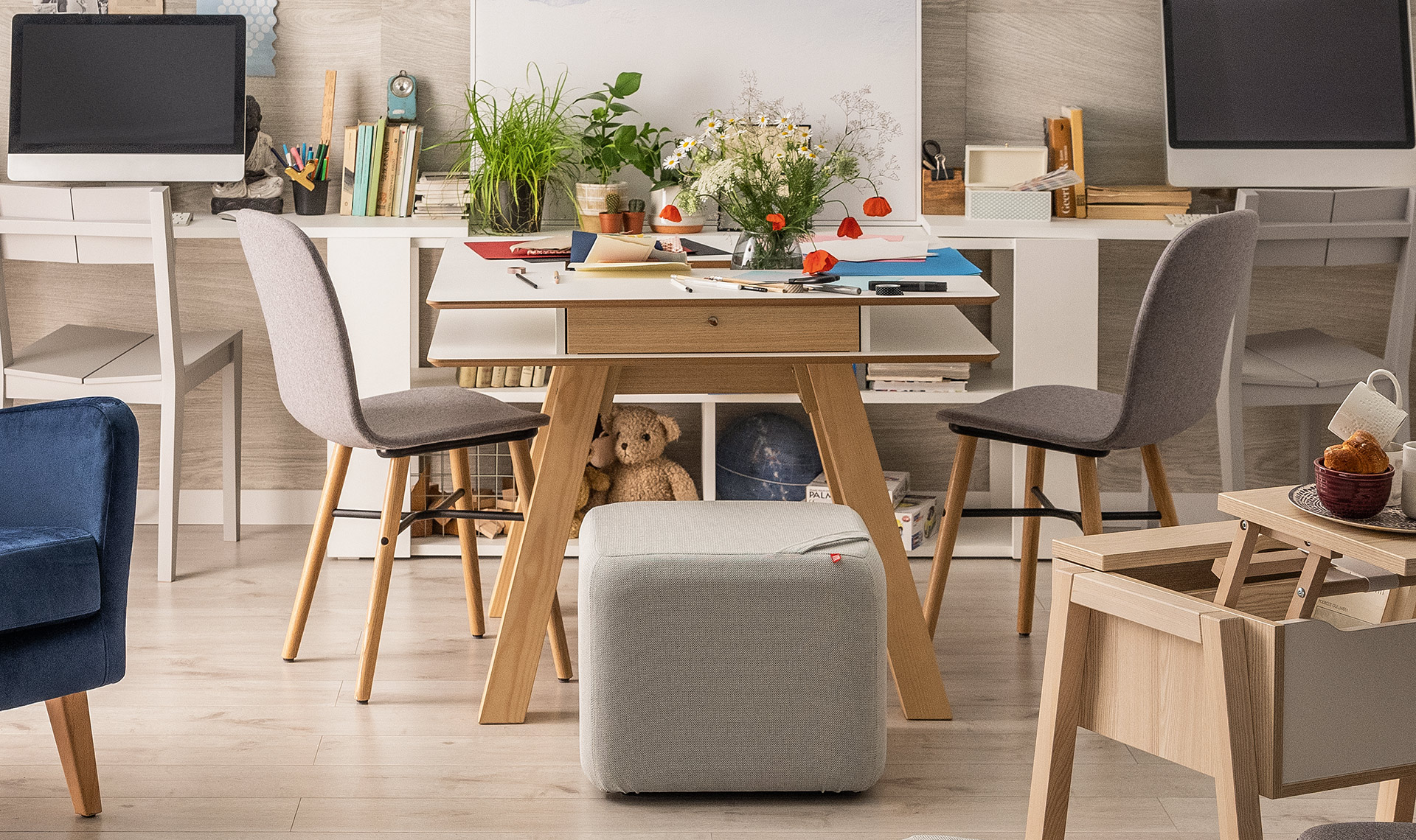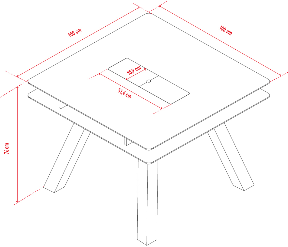 • Regularny blat w kształcie kwadratu doskonale dopasuje się do każdego pomieszczenia. Jego zaokrąglone narożniki zwiększają bezpieczeństwo – to szczególnie ważne, jeśli w domu mieszkają dzieci.
