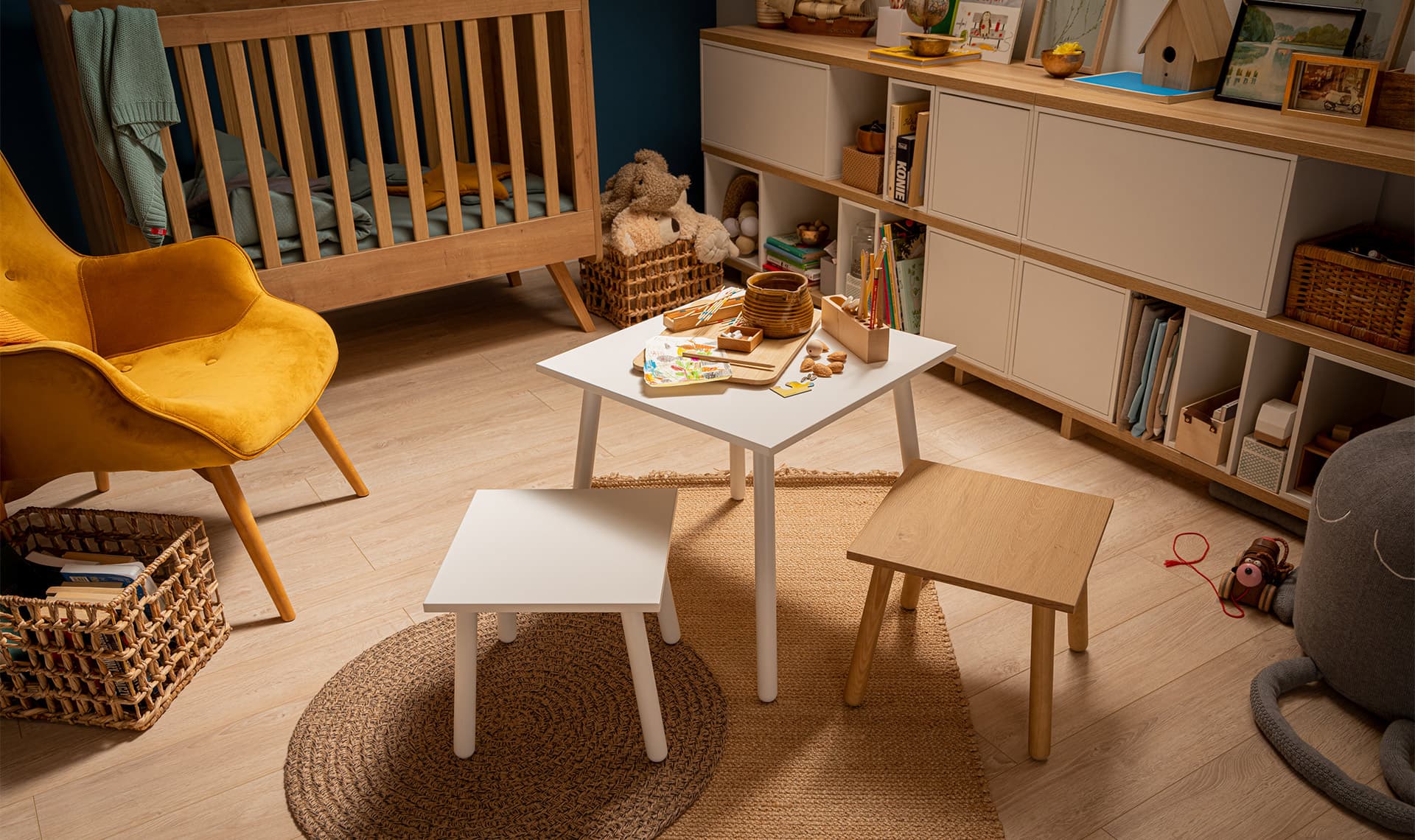 - Prosty stolik Match łatwo dopasuje się do aranżacji pokoju dziecka lub kącika do zabaw w salonie.