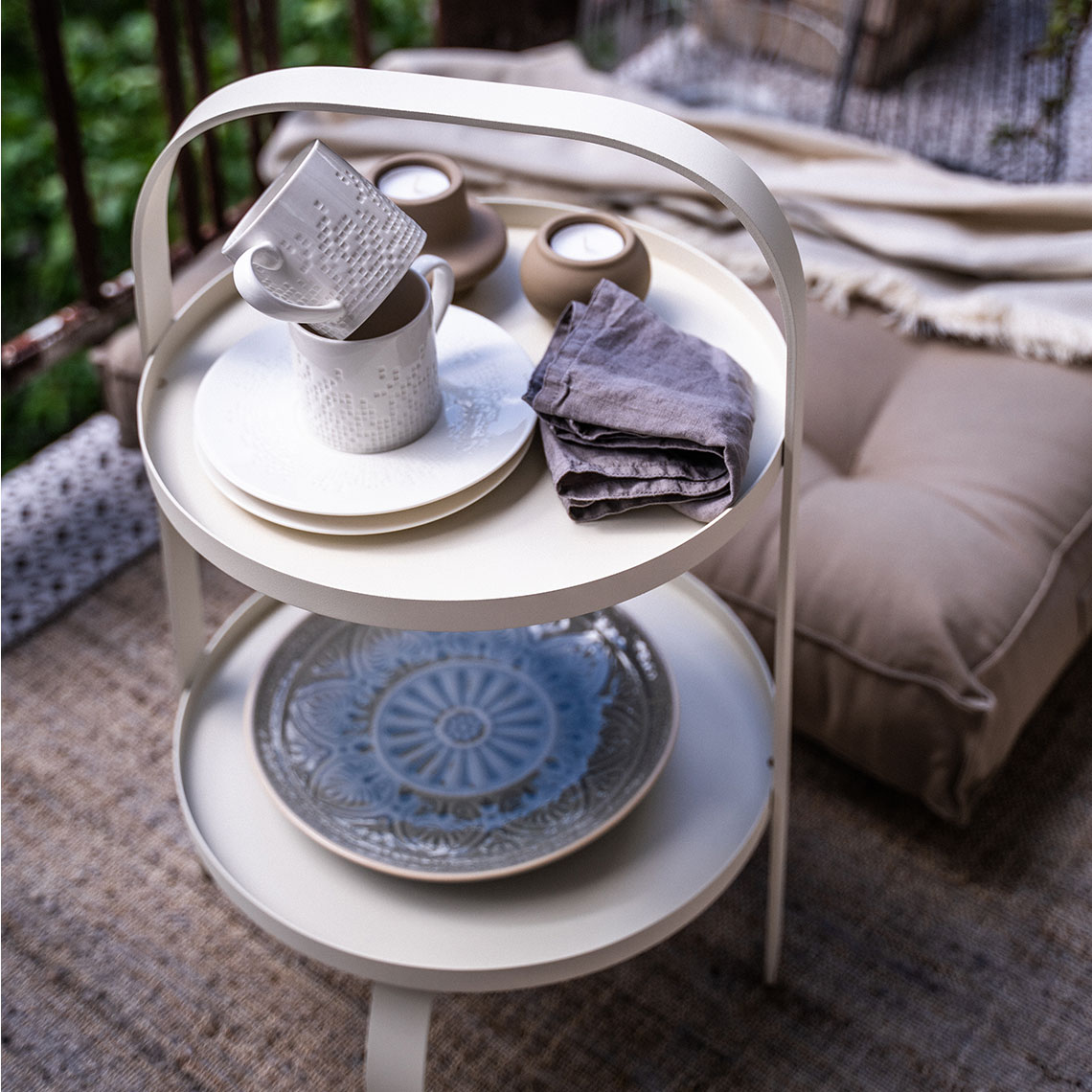 Ten stolik pójdzie z Tobą na garden party, pomoże zaaranżować kameralną kolację i otoczy opieką zioła, które pielęgnujesz na balkonie. Poręczny i mobilny Handy to jednoosobowy bohater wiosennych i letnich chwil na powietrzu. Jego piękny odcień bieli stanie się oryginalnym akcentem każdej aranżacji. W sezonie zimowym Handy z chęcią przyjmie nowe role; np. kwietnika w Twojej sypialni czy salonie.