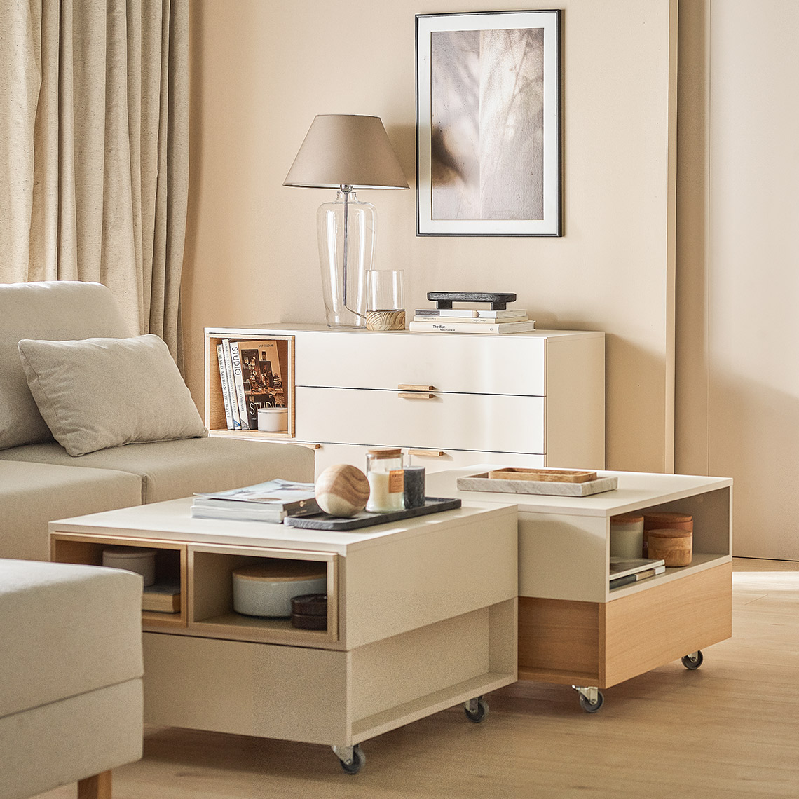 Wybierz stolik kawowy z kolekcji 4 You Fresh, by uzupełnić wystrój wnętrza i zapewnić sobie wygodną przestrzeń do odłożenia filiżanki kawy, pilota czy ulubionej książki. Dzięki szufladzie, wnęce i kółkom lub stópkom do wyboru poradzi sobie z każdym wypoczynkowym wyzwaniem. Możesz swobodnie go przestawiać i uzupełniać o skrzynki, które ułatwią organizację drobiazgów. Występuje także w jednokolorowej wersji.