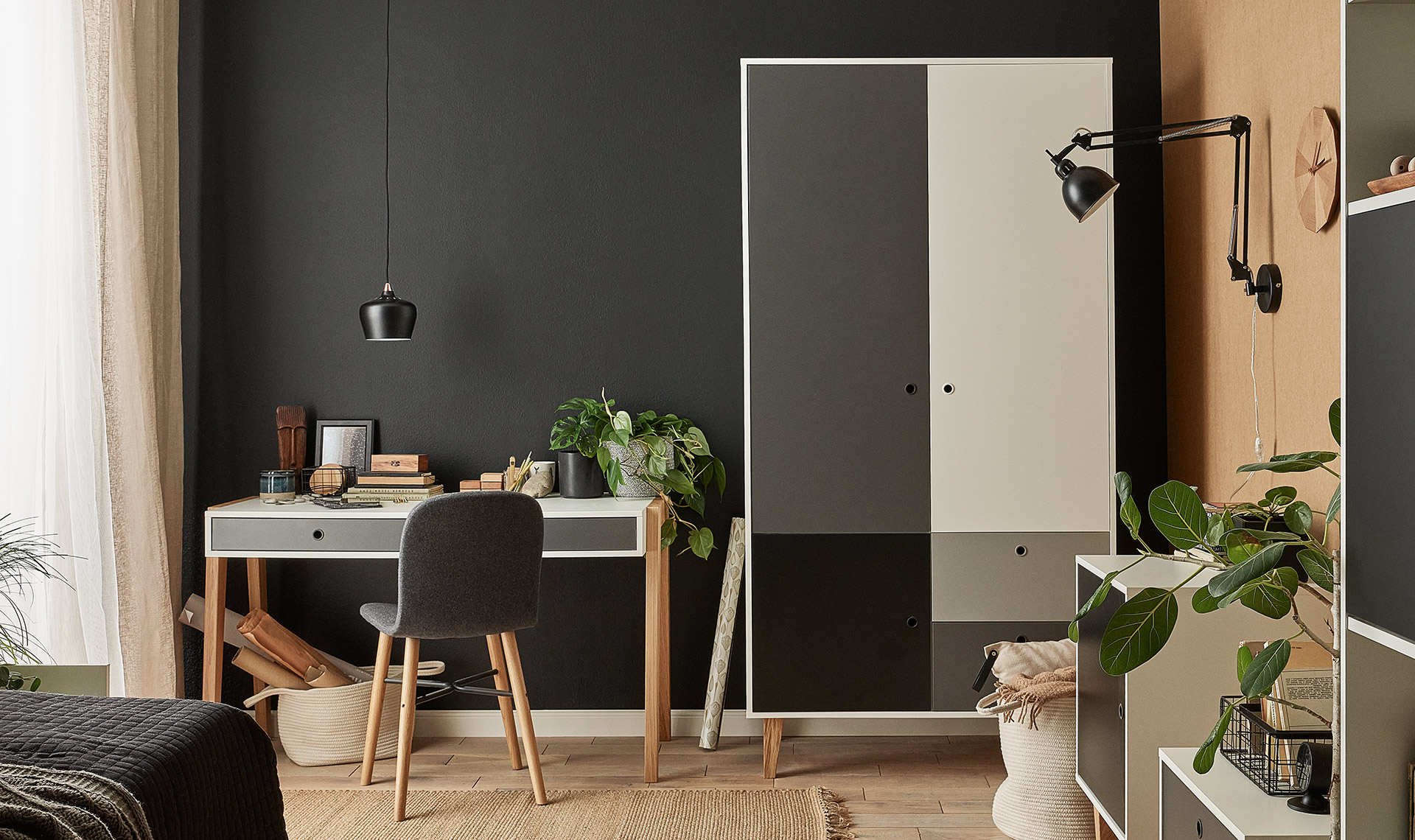 Praktyczna szafa 2-drzwiowa z kolekcji Concept bez trudu pomieści całą garderobę dziecka lub dorosłego, jednocześnie nie zajmując wiele miejsca w pokoju. Funkcjonalne wnętrze mebla ułatwia utrzymanie porządku, pozwalając zorganizować rzeczy wedle własnych potrzeb.