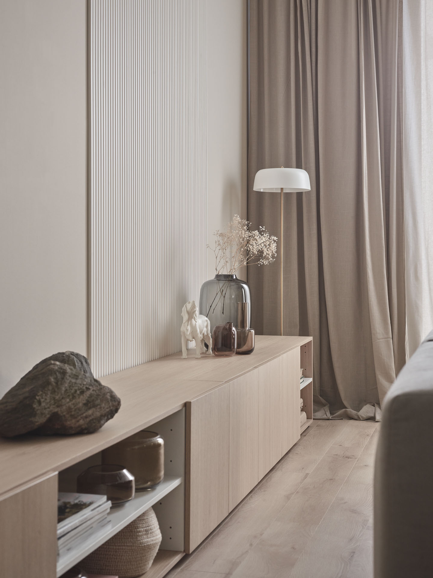 - Do szafki RTV możesz wybrać listwę oświetleniową LED, którą możesz łatwo przykleić do dołu wybranej półki. Montując ją bliżej ściany tylnej w otwartych przestrzeniach można jeszcze lepiej wyeksponować przedmioty na półce. W celu podświetlenia wnętrza szuflad listwę LED należy przykleić bliżej przodu mebla. Wraz z oświetleniem otrzymasz bezprzewodowy włącznik, który można magnetycznie przymocować w najwygodniejszym miejscu.