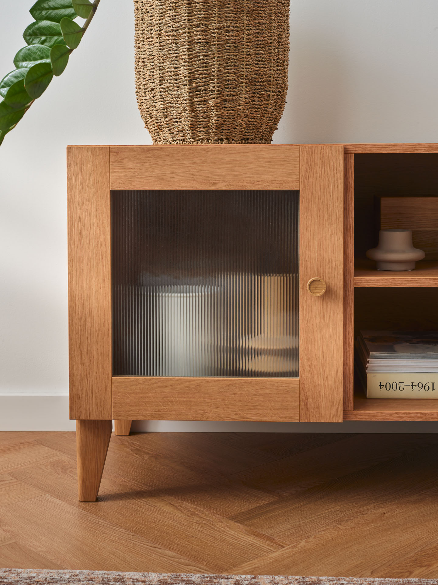 - Prawie 2 m długości i 45,5 cm głębokości: szafka bez problemu zmieści konsolę, dekoder czy kolekcję płyt.