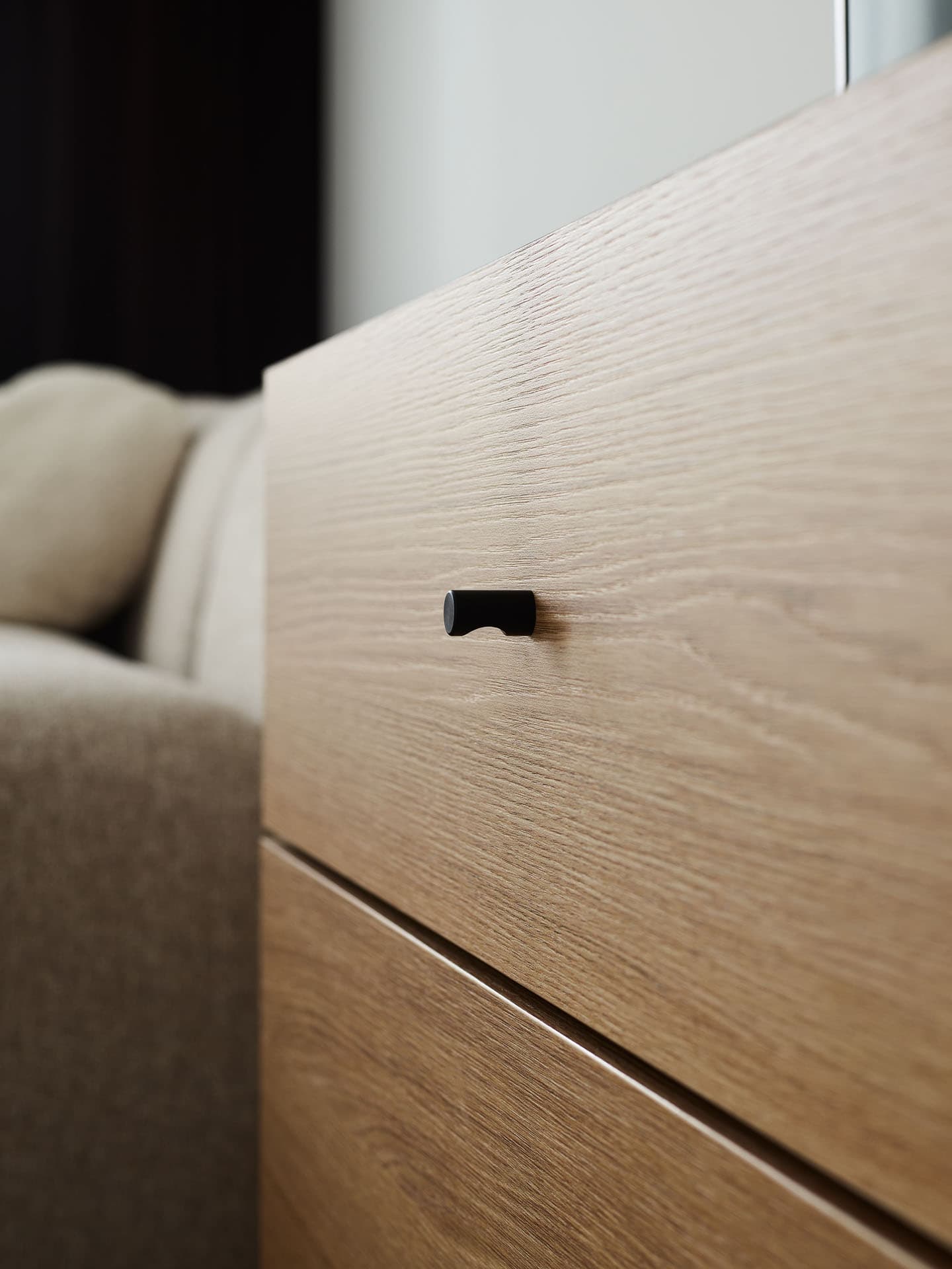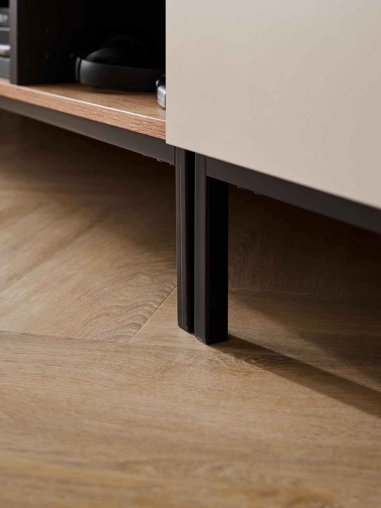 - Do wyboru klasyczne barwy: biały, szary, czarny, dąb jasny i dąb miodowy, a także wyjątkowe nowości – piaskowy beż oraz dąb słomkowy o strukturze synchronicznej - wytłoczenia powierzchni idealnie odwzorowują układ słojów drewna, dzięki temu mebel zarówno w dotyku, jak i w wyglądzie przypomina naturalne drewno, zachowując przy tym trwałość i łatwość pielęgnacji nowoczesnego laminatu.