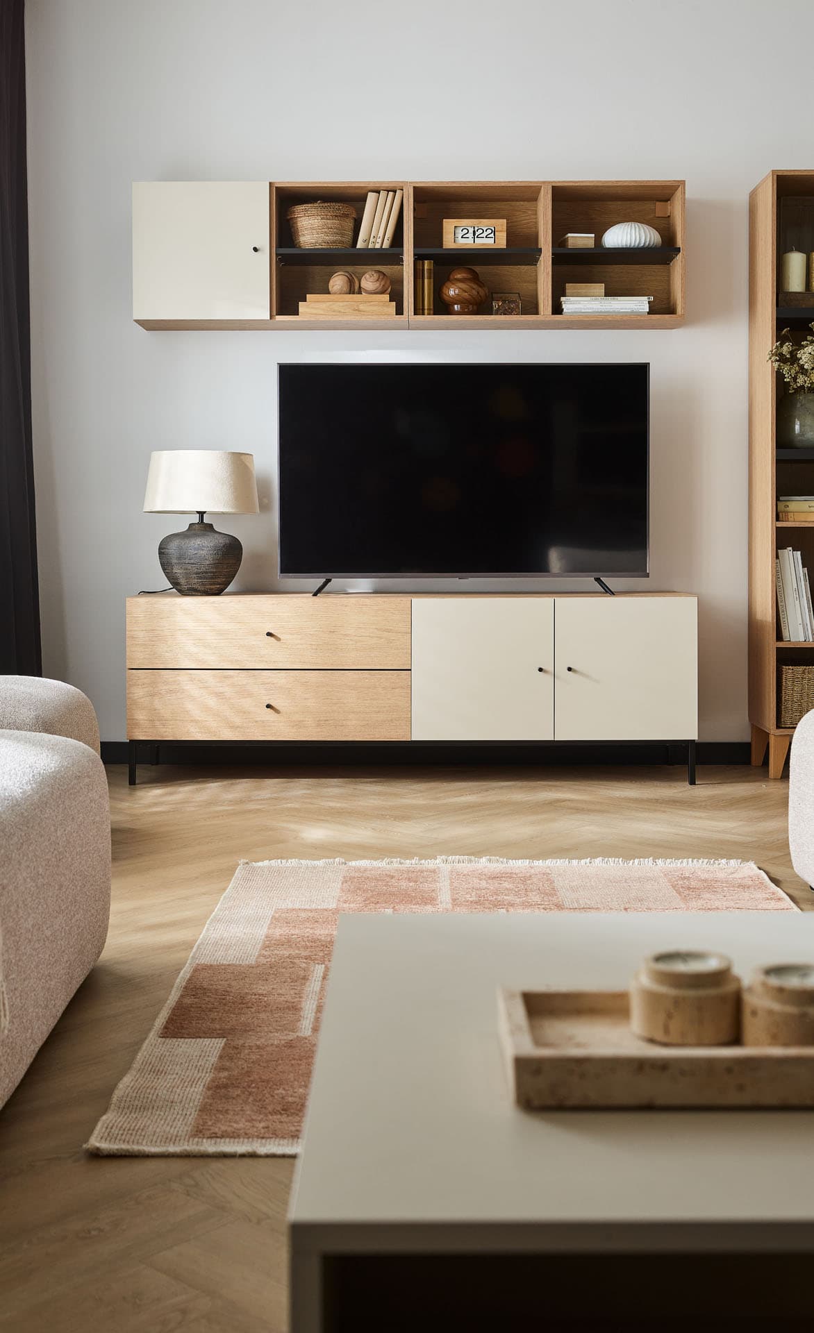 Szeroka szafka RTV pomieści wszystko to, co niezbędne w domowym centrum rozrywki. Dzięki możliwościom, które daje system meblowy Creative, precyzyjnie dopasujesz wygląd i konfigurację mebla do Twoich potrzeb.