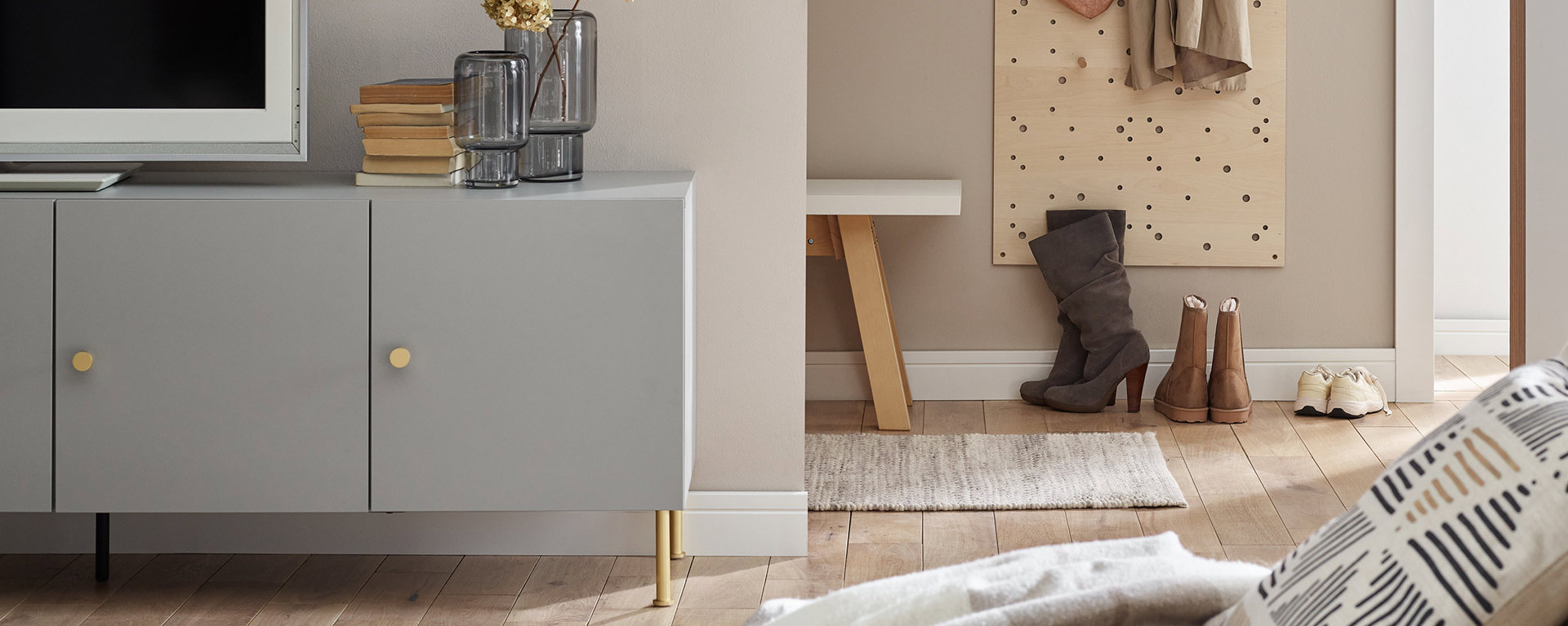 - Ustaw szafkę na nogach, płozach lub bezpośrednio na podłodze. Do wyboru jest 12 różnorodnych rozwiązań.