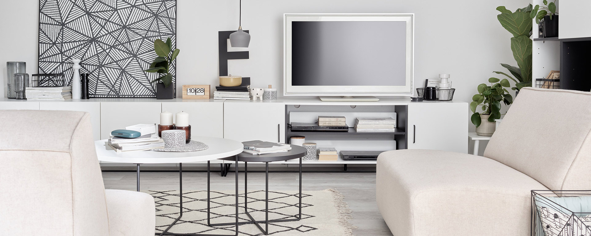 - Do szafki RTV możesz wybrać listwę oświetleniową LED, którą możesz łatwo przykleić do dołu wybranej półki. Montując ją bliżej ściany tylnej w otwartych przestrzeniach można jeszcze lepiej wyeksponować przedmioty na półce. W celu podświetlenia wnętrza szuflad listwę LED należy przykleić bliżej przodu mebla. Wraz z oświetleniem otrzymasz bezprzewodowy włącznik, który można magnetycznie przymocować w najwygodniejszym miejscu.