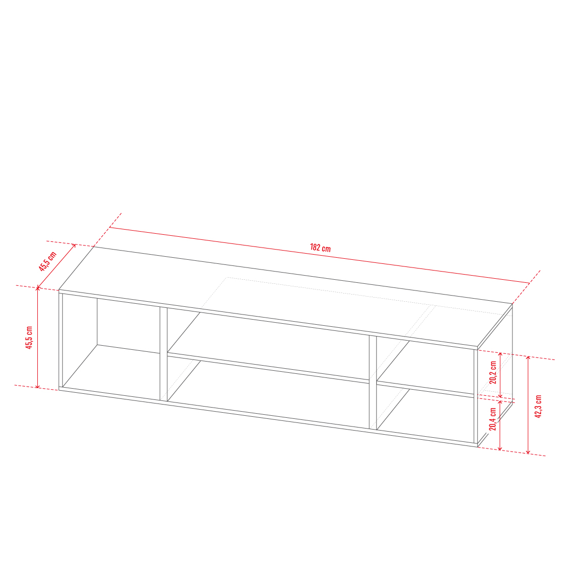 - Prawie 2 m długości i 45,5 cm głębokości: szafka bez problemu zmieści konsolę, dekoder czy kolekcję płyt.