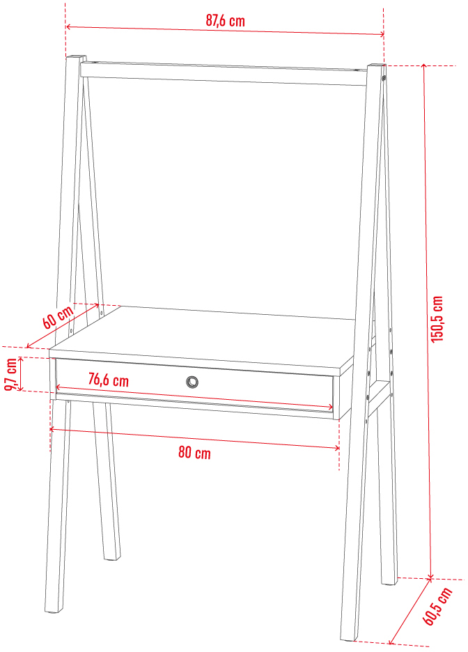 - Korpus, szuflada i front szuflady: laminowana płyta wiórowa o grubości 16 mm.