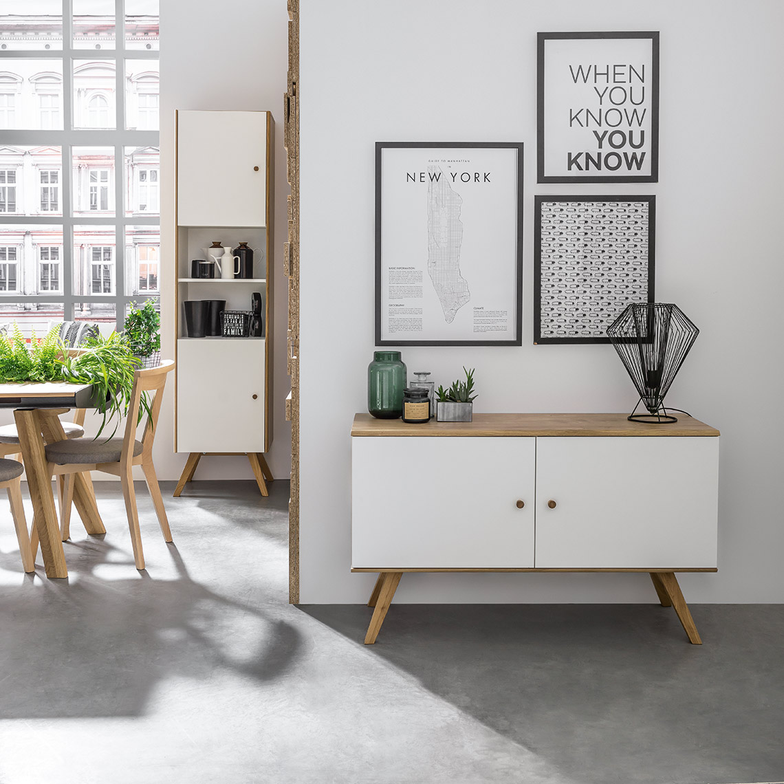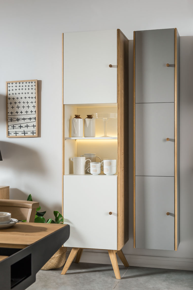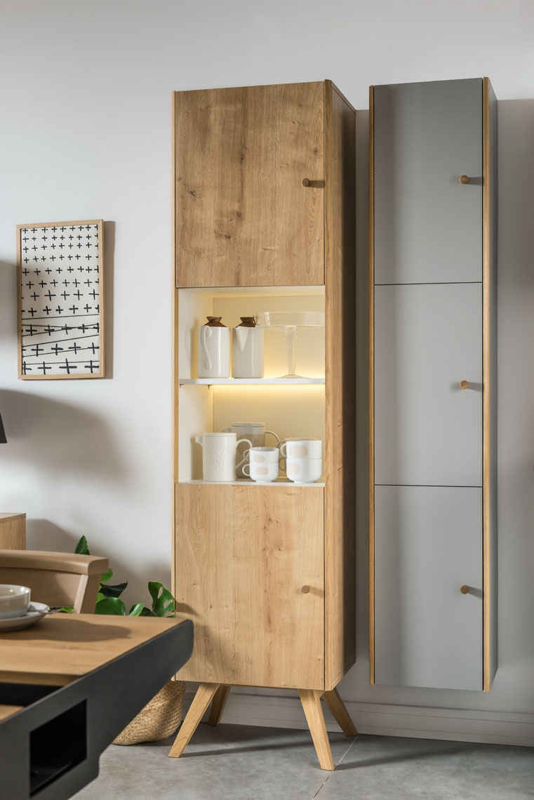 Dzięki witrynie z kolekcji Nature rzeczy w Twojej jadalni znajdą swoje miejsce! Dwie pojemne szafki zapewniają miejsce na talerze i obrusy, zaś dzięki otwartym półkom zyskasz łatwy dostęp do często używanych przedmiotów. Wygląd witryny możesz dopasować do swojej aranżacji, dobierając jedną z dwóch opcji kolorystycznych.