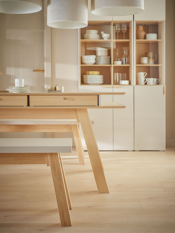 - Do mebla można dostawić witrynę wąską lub regał z tej samej kolekcji, by zwiększyć ilość miejsca do przechowywania i ekspozycji.