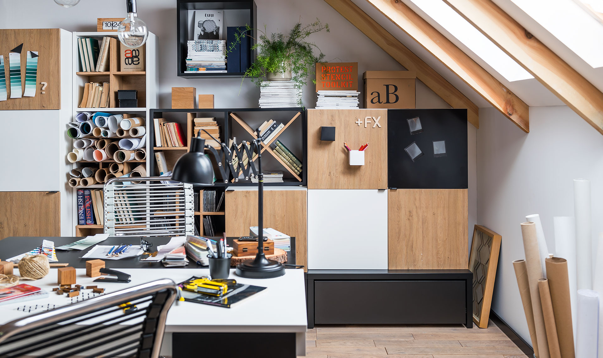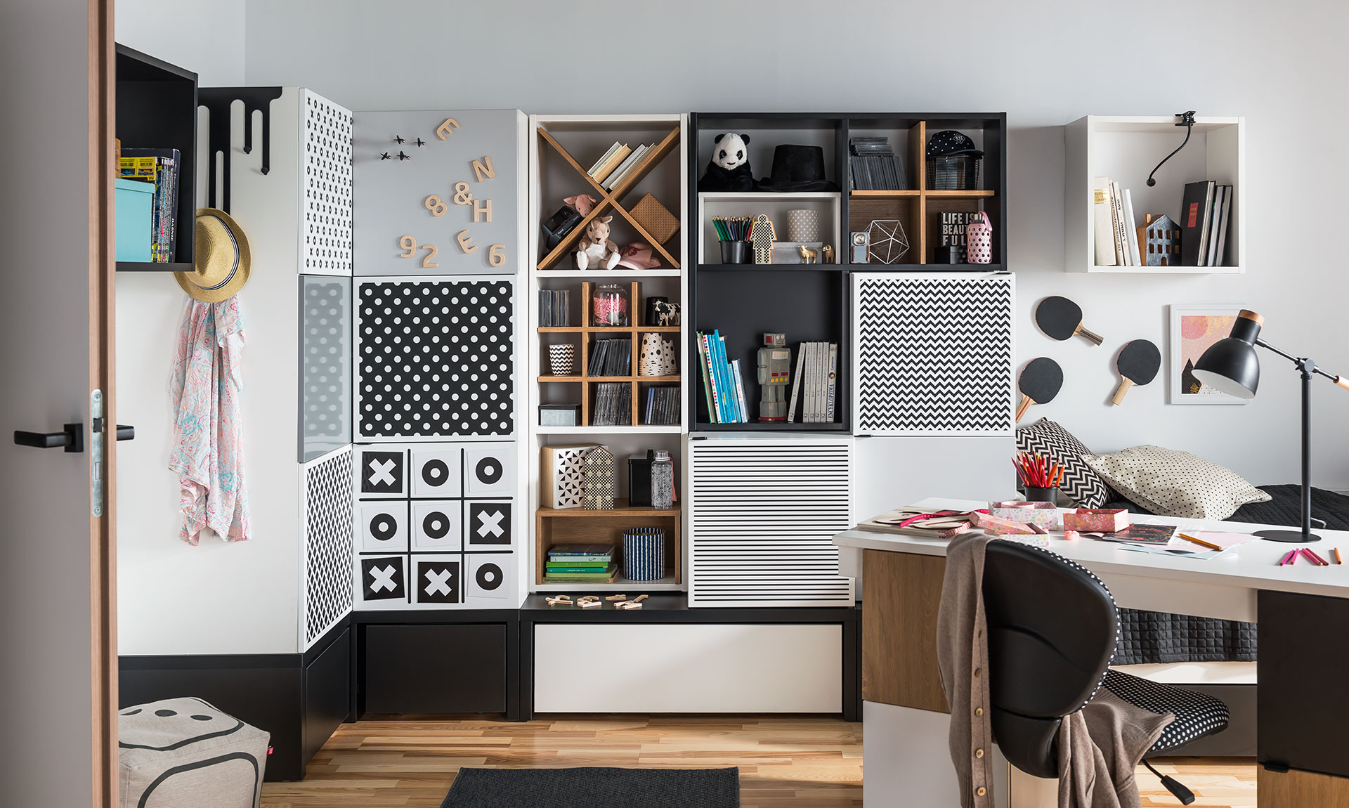 Spersonalizuj wygląd regału lub półki z serii Young Users, wykorzystując wypełniacz w kształcie kratki. Akcesorium sprytnie dzieli przestrzeń i ułatwia zorganizowanie drobiazgów.